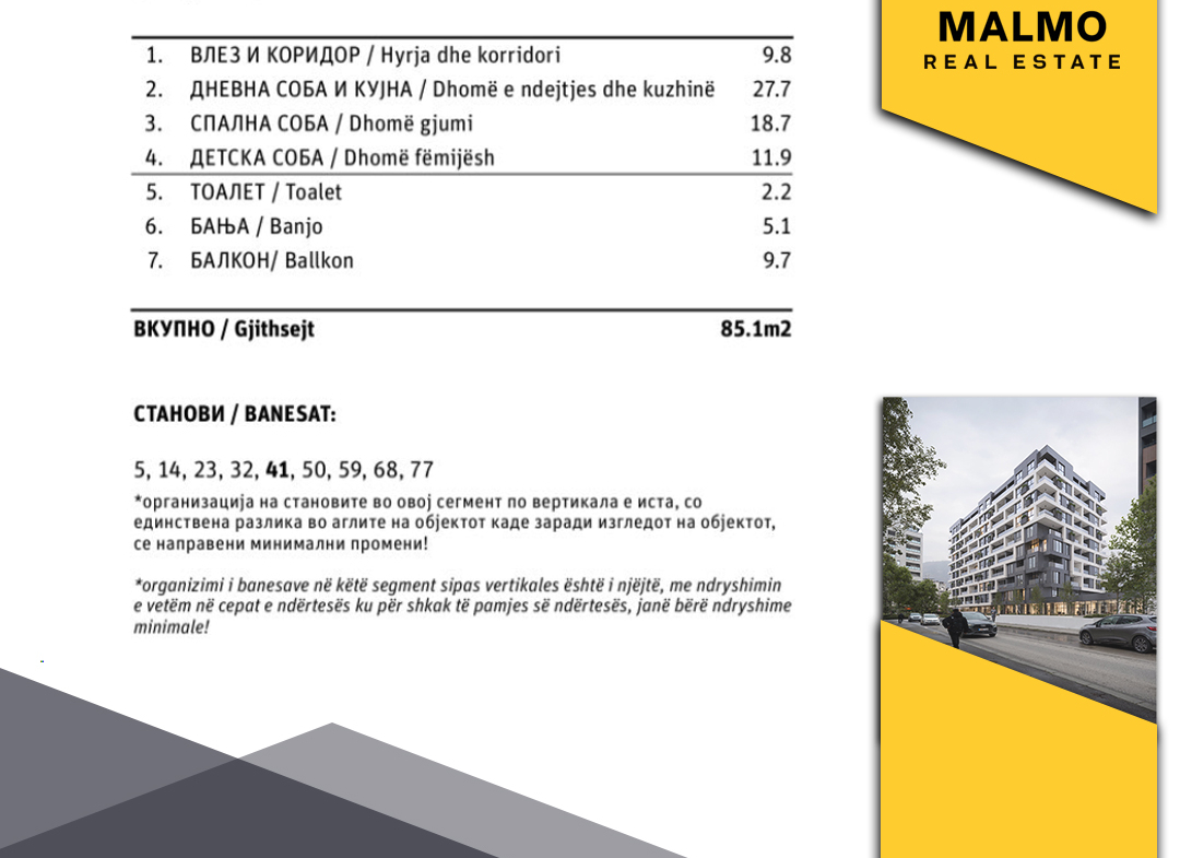 Во срцето на модерен и мирен комплекс, ви го претставуваме овој стан од 85.1м², на 4-ти кат со западна ориентација — совршен за семејства кои бараат светлина, мир и удобност секој ден. ![]()